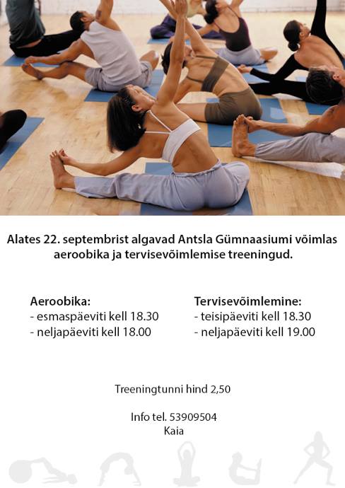 AREOOBIKA Antsla Gümnaasiumi võimlas igal esmaspäeval kl.18.30 ja neljapäeval kl.18.00