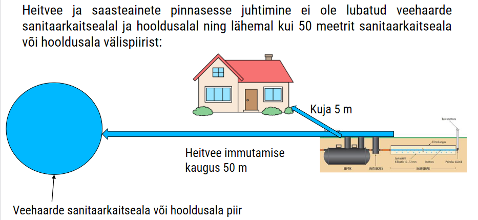Imbväljaku kuja (10 m) ei tohi kattuda veekaitsevööndiga. Hoonetest peab olema imbsüsteem vähemalt 10 m kaugusel, septik vähemalt 5 m kaugusel.