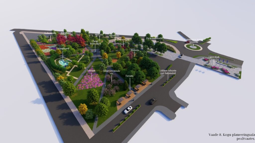 Projekteerimisega lahendatakse lipuväljaku kujundus, jalakäijate liikumisteed, mänguväljak, välikohviku ala, noorteala, veoautode parkimine Põllu tänaval jm lähteülesandest tulenevad eesmärgid, mis on näha eskiislahendusel.